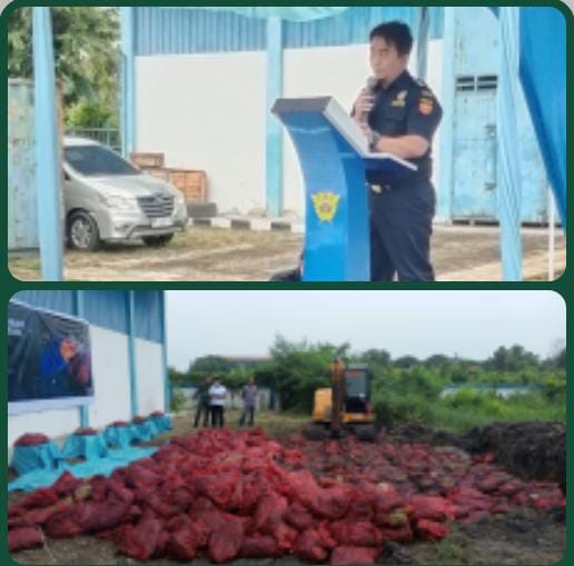 SUARAKRITIK.COM-DUMAI– Bea Cukai Dumai Rabu 17 / 09 / 2025 Pukul 16:00 Wib melaksanakan pemusnahan Bawang Merah hasil tangkapan Bea Cukai Dumai dari Malaysia bertempat di halaman belakang Kantor Bea Cukai Dumai.